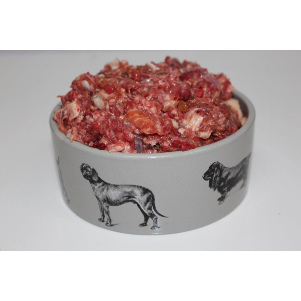 Složení: 30 % hovězí ořez, 20 % hovězí plíce, 20 % hovězí chrupavka, 20 % zelenina (mrkev a čínské zelí), 10 % losos