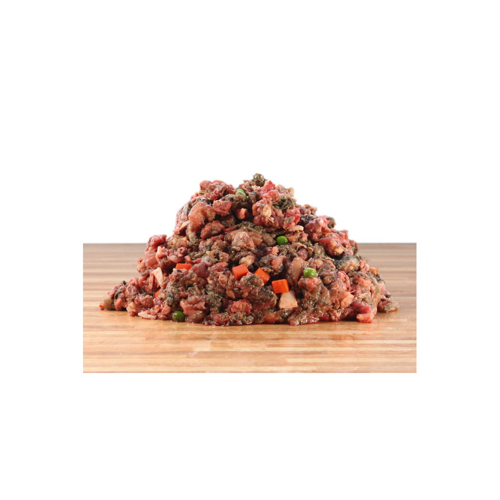 Složení masa: 40% hovězí svalovina s chrupavkou, 40% hovězí dršťky, 20% zelenina (10% hrášek, 10% mrkev)