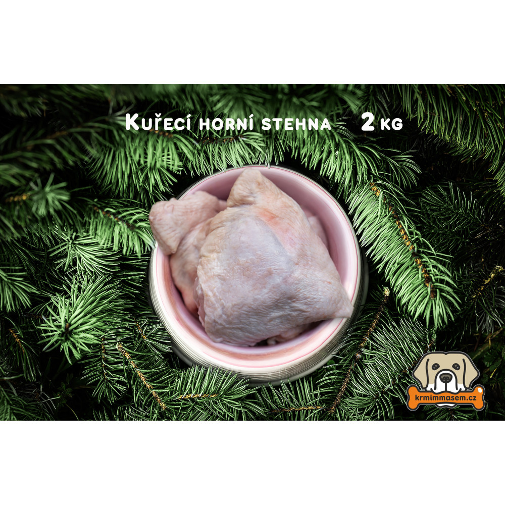 Kuřecí horní stehna s kůží. Váha balení 2 kg. Kuřata z českého chovu. Krmná surovina.