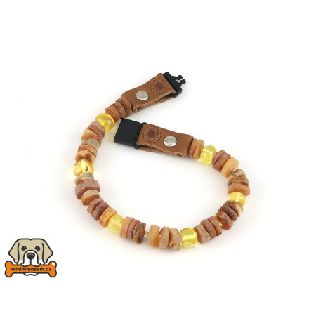 Jantar je fosilní stromová pryskyřice, která obsahuje aromatické chemikálie zvané terpeny, které se uvolňují když se jantar tře o srst nebo zahřívá. Ty se poté absorbují do srsti a odpuzují klíšťata a blechy.