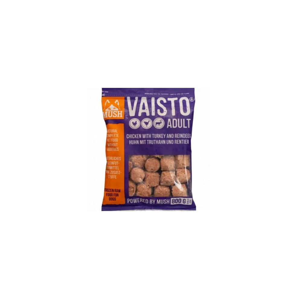 MUSH Vaisto Lila (kuře+krůta+sob) je snadno stravitelné a nízkokalorické kompletní jídlo pro všechny dospělé psy. Vaisto Lila má velmi dobrou rovnováhu mastných kyselin, a proto je vhodný zejména pro psy s kožními problémy.