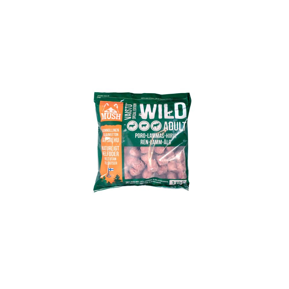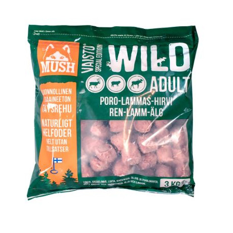 MUSH Vaista Wild (jehněčí-sobí-losí) je snadno stravitelné a nízkokalorické kompletní jídlo pro všechny dospělé psy. Vaisto Wild má velmi dobrou rovnováhu mastných kyselin, a proto je vhodný zejména pro psy s kožními problémy.