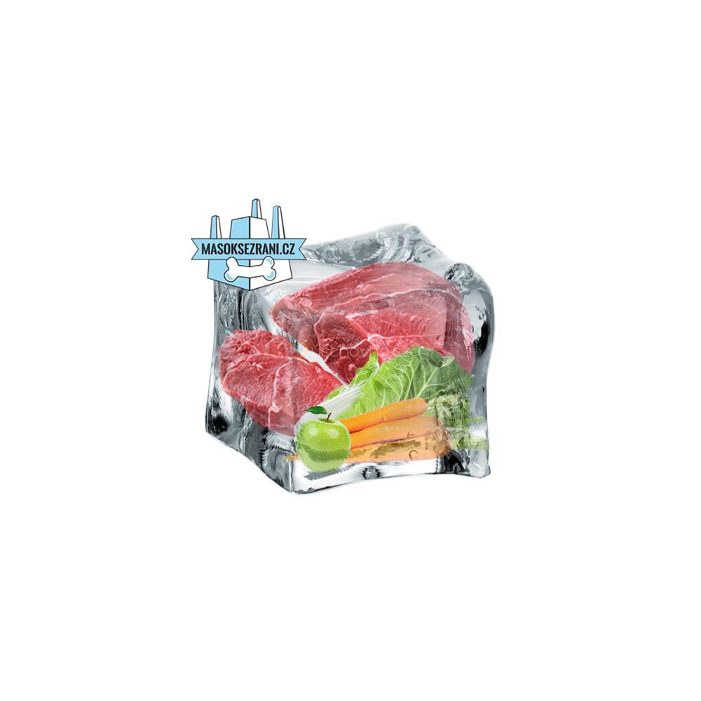 BARF - HOVĚZÍ KOMPLET je mleté syrové maso určené ke krmení psů a jiných domácích šelem. Maso je mleté a zabalené v plochém PE/PP obalu. Výhodou tohoto balení je dobrá skladovatelnost, protože zabírá v mrazáku málo místa a zároveň je možné, celkem snadno ulomit a rozmrazit jen část balíčku. Veškeré použité suroviny odpovídají potravinářské kvalitě.