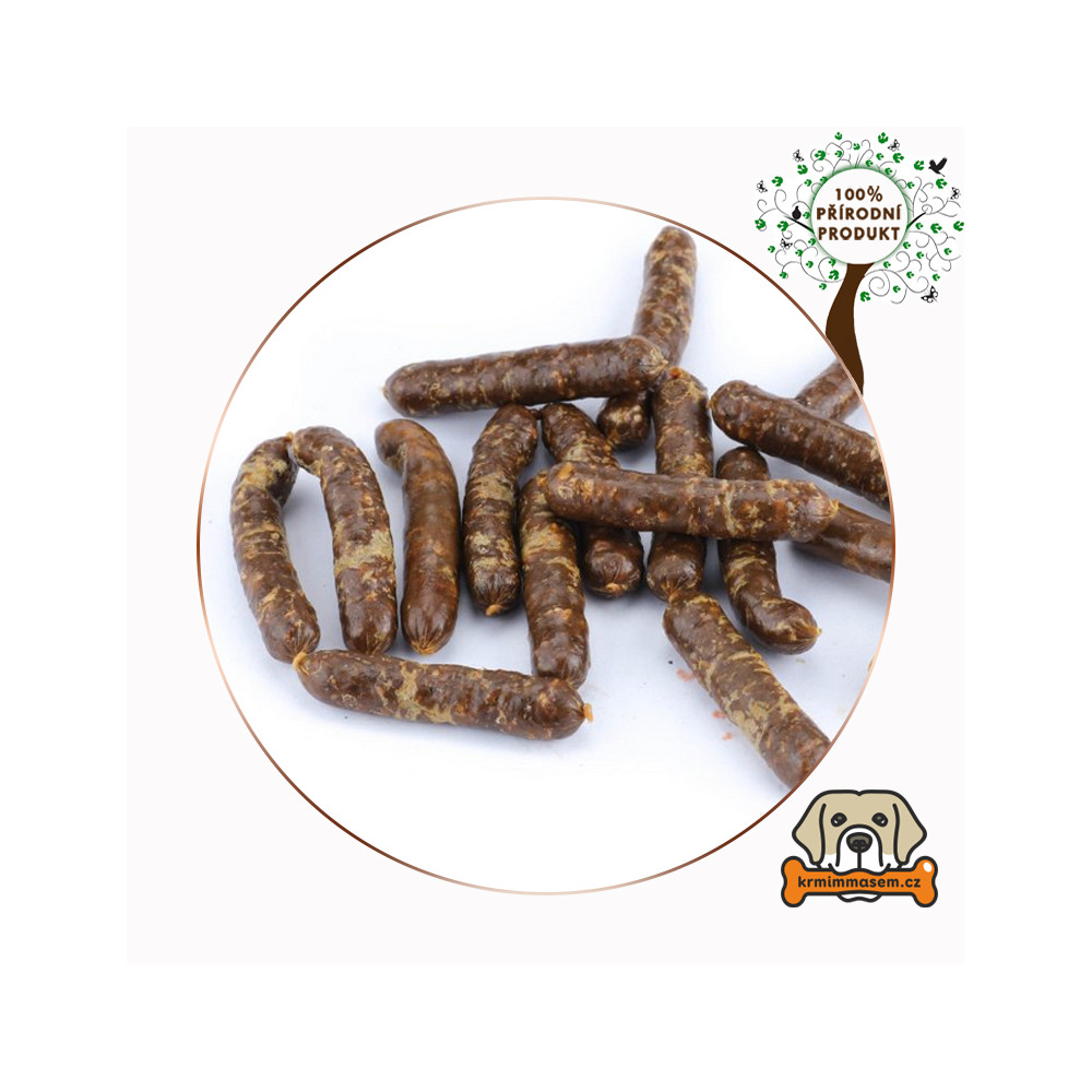 U menších plemen, starších psů nebo v případě horšího chrupu doporučujeme klobásky nakrájet na menší kousky či rozmělnit.