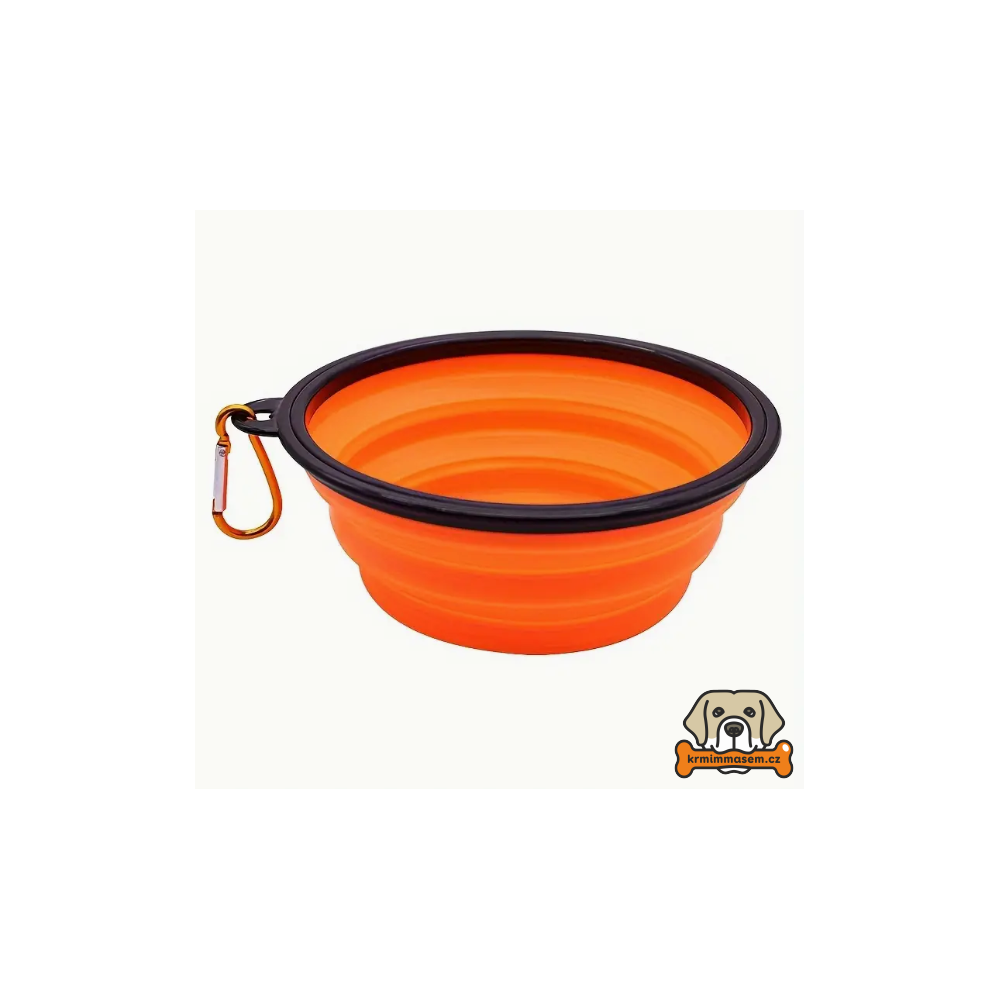 Cestovní silikonová miska s pevným, plastovým okrajem na vodu či krmivo je ideální pro cestování, sportování či práci se psy.