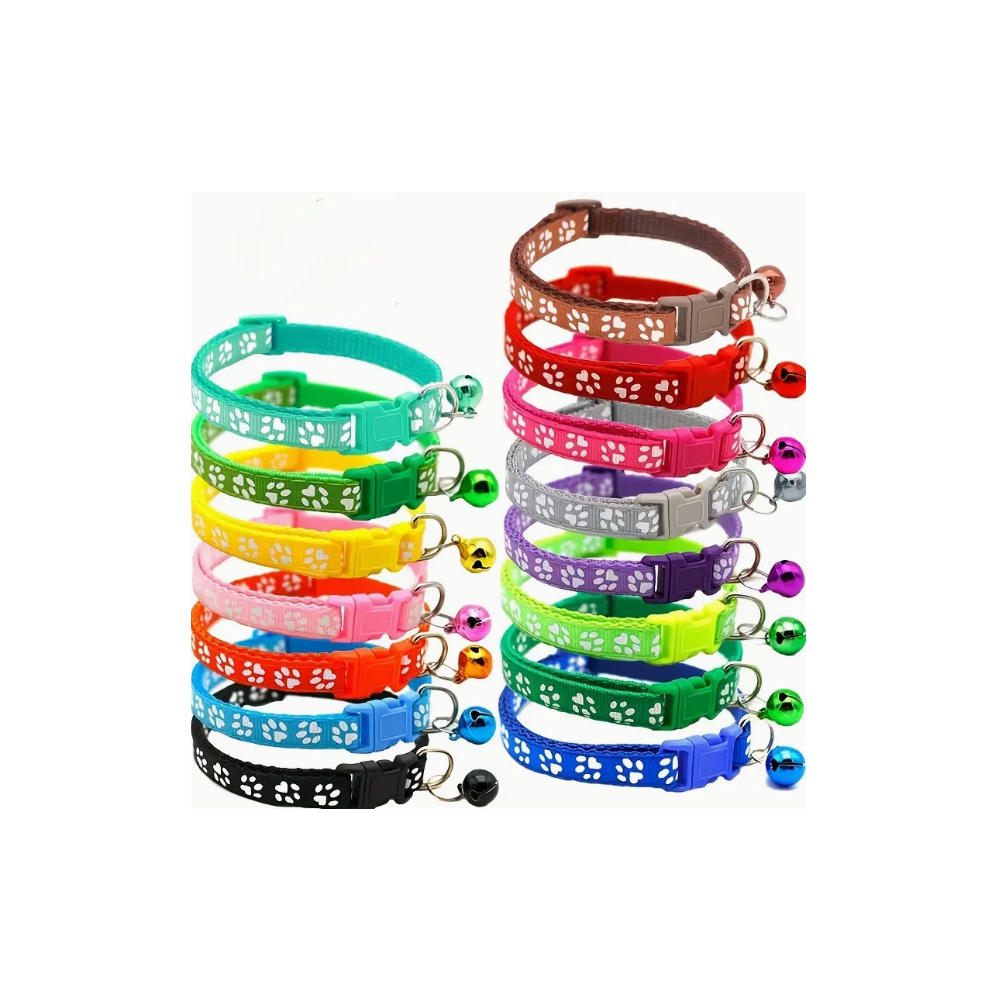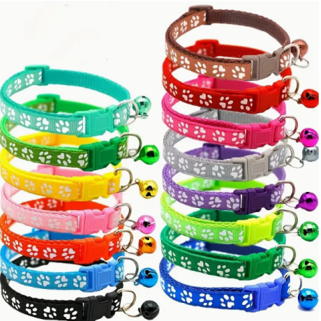 Nastavitelný obojek s tlapkami a rolničkou v různých barvách