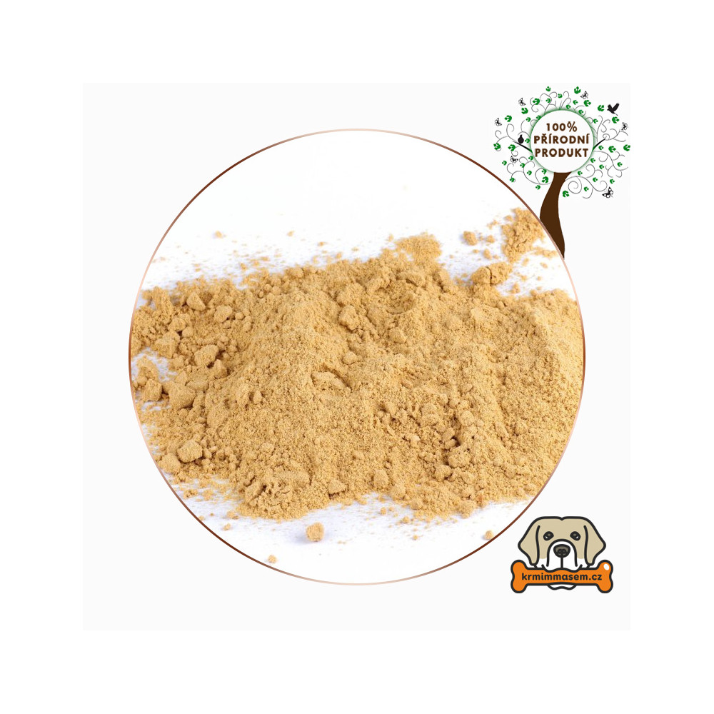 Směs má přírodní nažloutlou barvu a jemně olejovou vůni po lecitinu, díky čemuž ji psi velmi dobře přijímají. Sypká forma umožňuje snadnou aplikaci do jakéhokoli typu krmiva — BARF, granule, konzervy i vařené přílohy. Směs nepráší, dobře se na krmivo nalepí a rovnoměrně se rozmíchá.