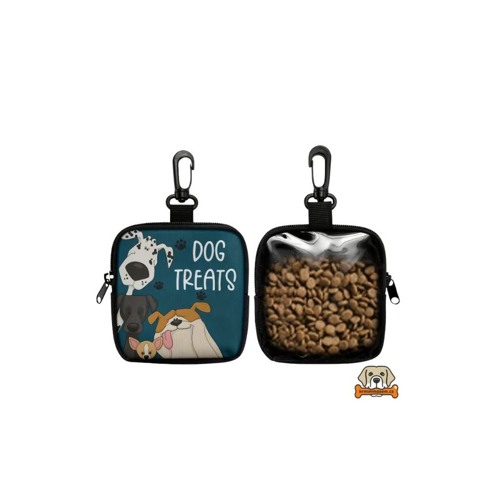 Šikovný pamlskovník  prostorná kapsa na pamlsky ze zipem. Zadní strana průhledná.