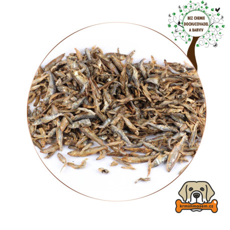 Drobné sušené mořské rybičky o velikosti 3,5 - 6 cm pro psy a kočky.