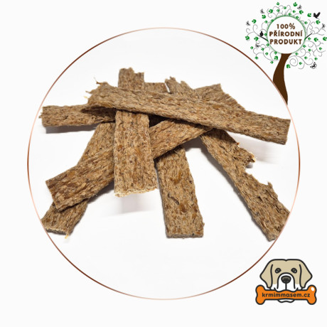 Přírodní sušené masové proužky - konina s velmi výraznou vůní. 100% čisté bez glycerinu a umělých...
