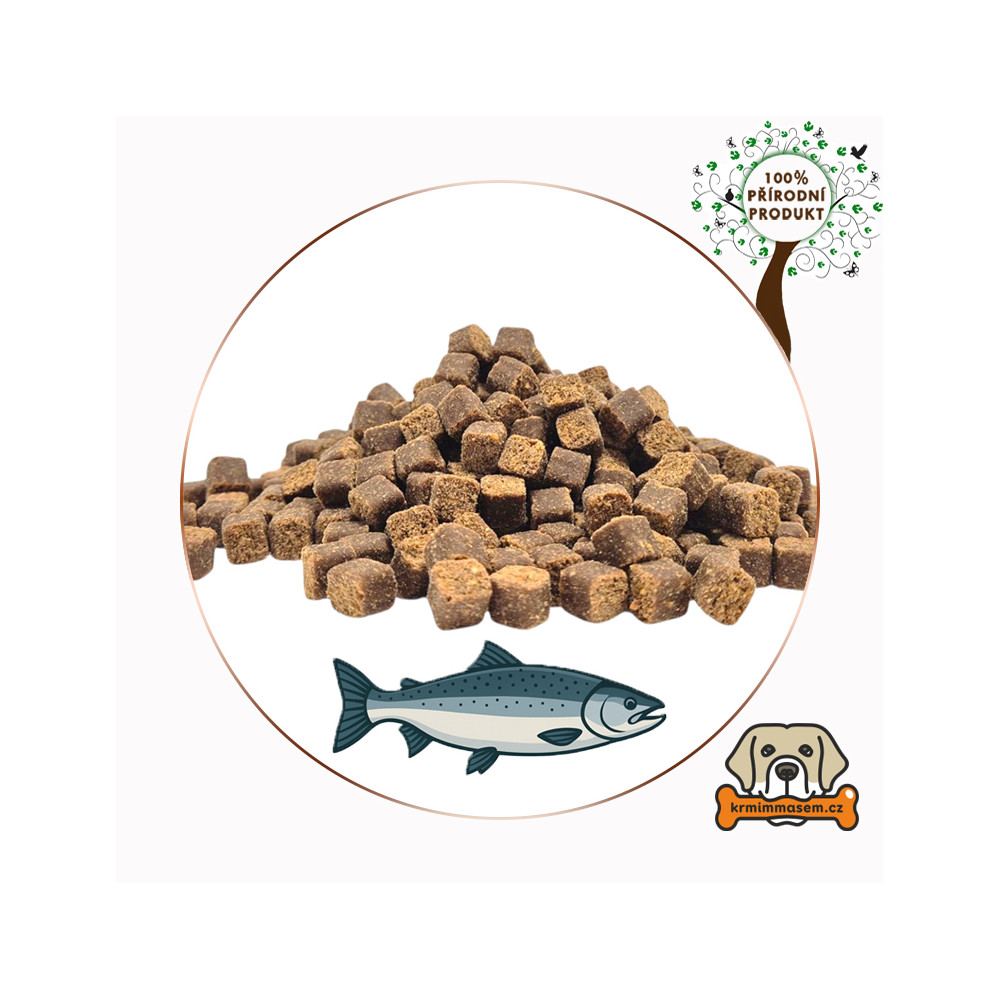 Lososí maso vytváří skvělou chuť, které neodolají ani mlsní psíci. Díky měkké konzistenci se snadno koušou, nerozpadají se v kapse a jsou ideální pro trénink nebo pro rychlou odměnu při venčení.