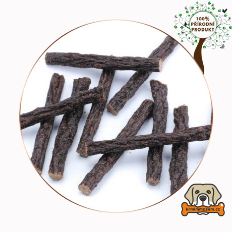 100% Přírodní pamlsek z hovězího masa a drštěk.