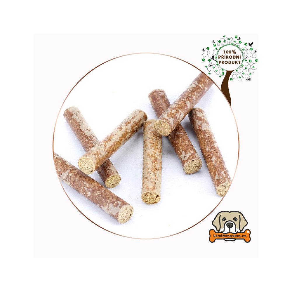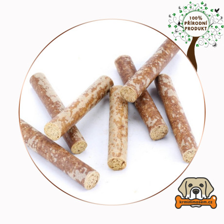Sušené drůbeží maso v přírodním kolagenovém střívku nasekané na ks o délce cca 10 - 15 cm.