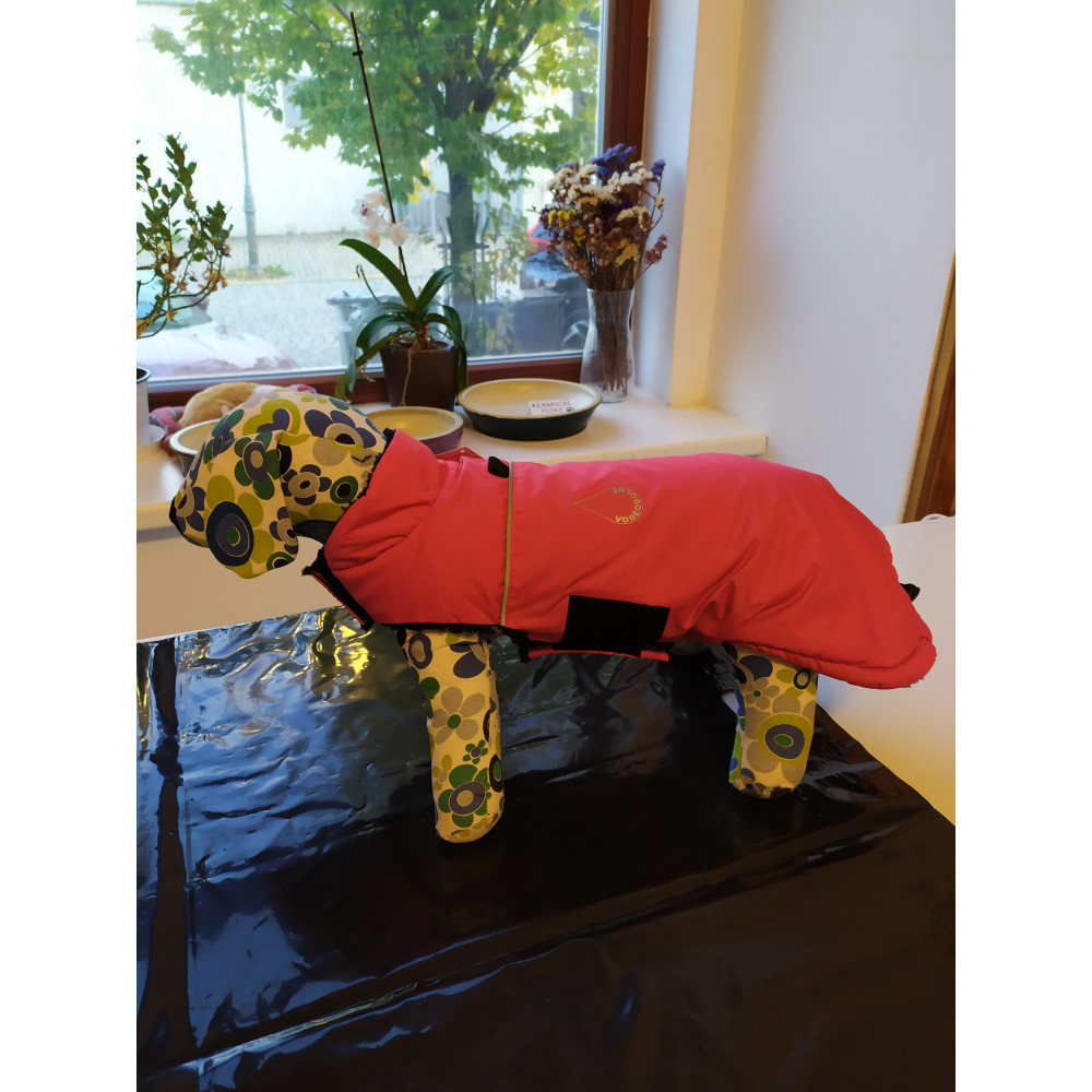 Zavinovací pláštěnka - nepromokavý šusťák - růžová, vel. 4. Pláštěnka chrání psa před chladem, větrem i deštěm. Vnitřní podšívka je z měkkého a hřejivého fleecu.