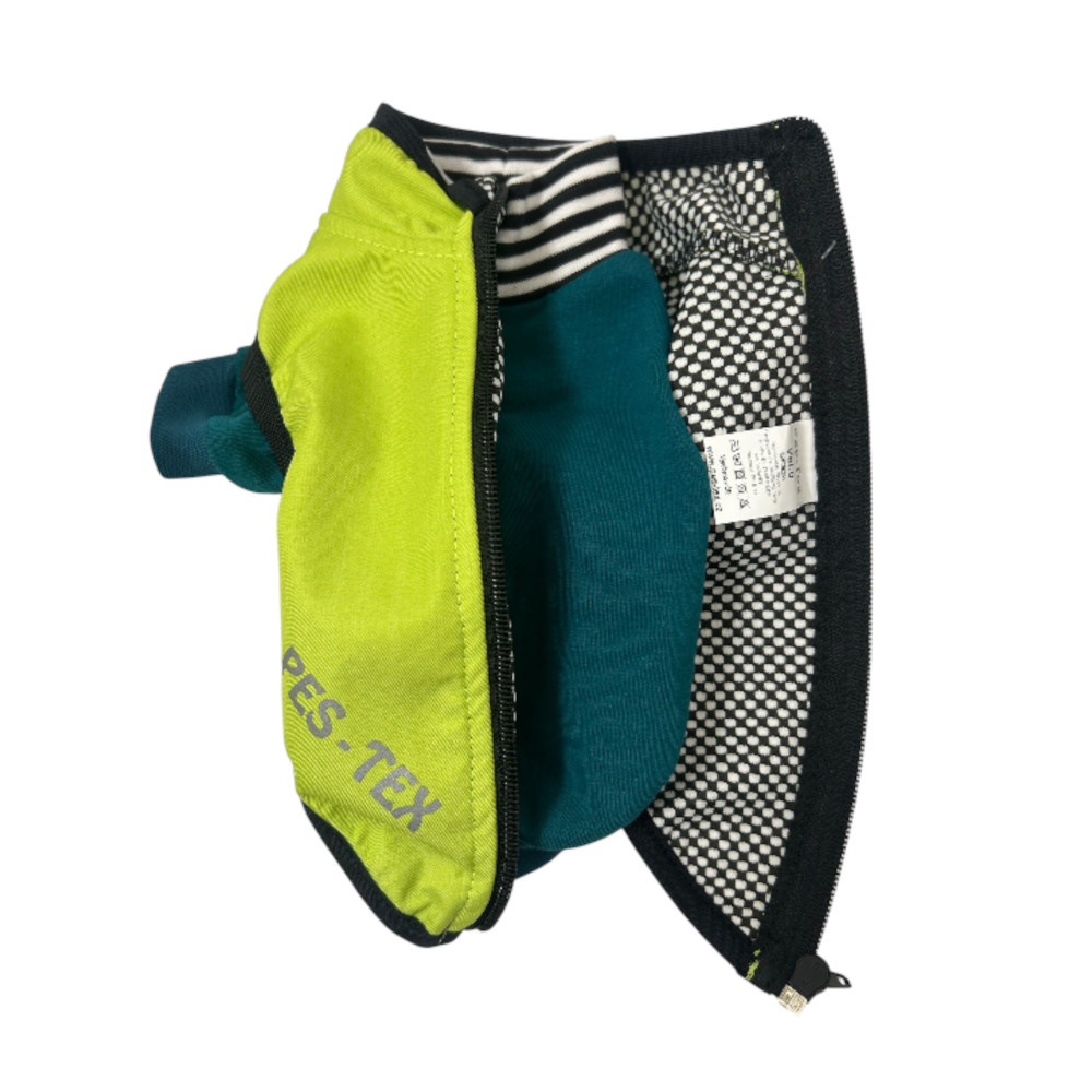 Limetka, VEL. 0. Nepromokavá softshellová bundička s rozepínáním na zádech + mikina.